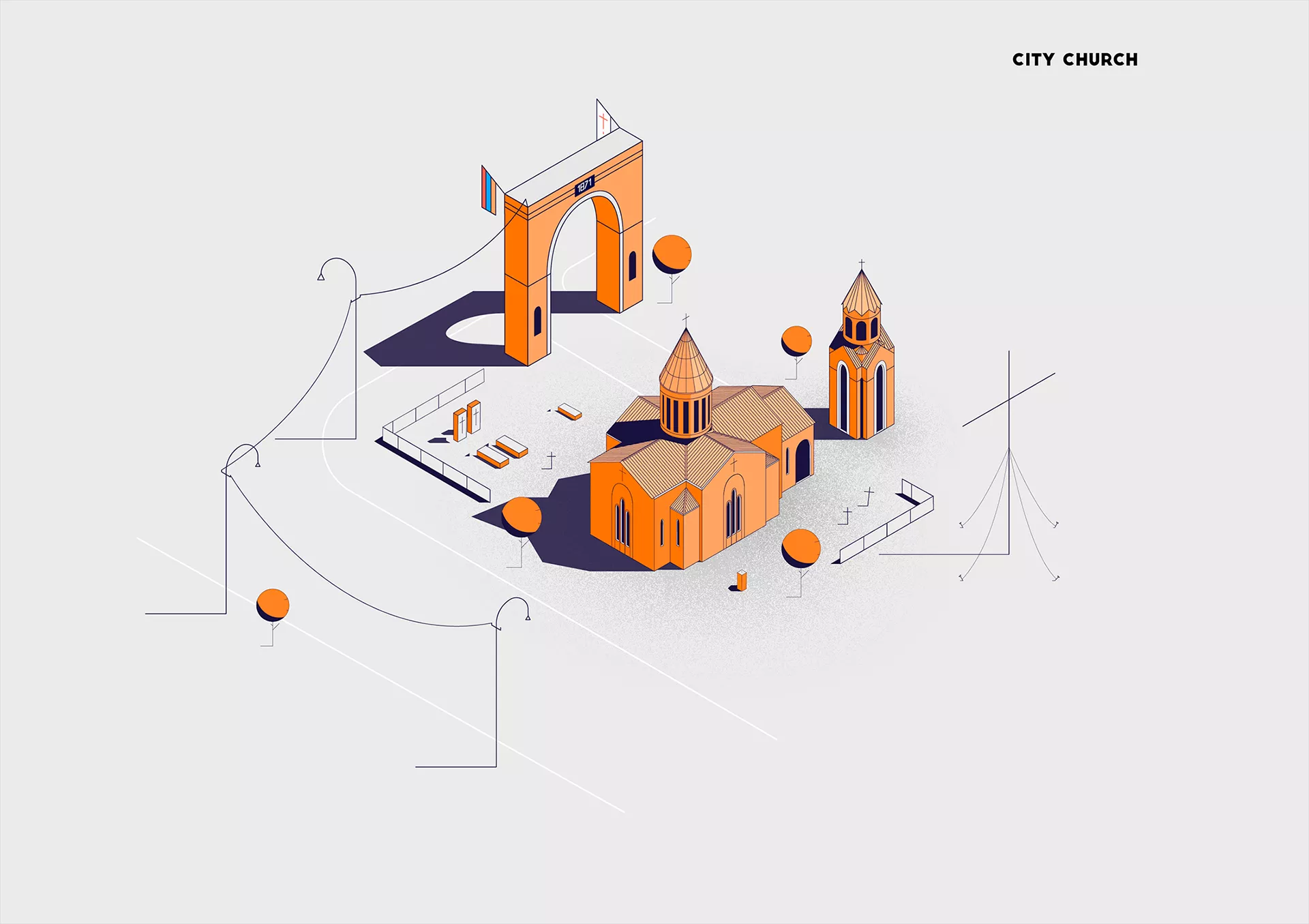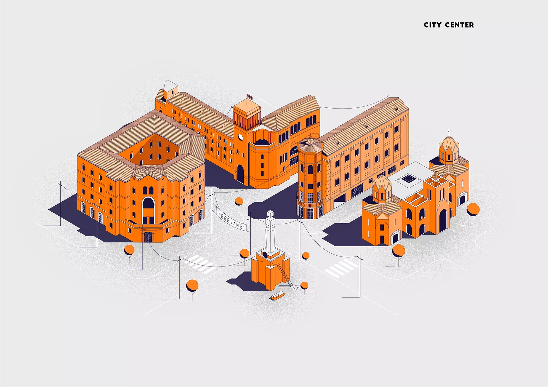Task. Create isometric illustrations dedicated to the day of the city of Yerevan